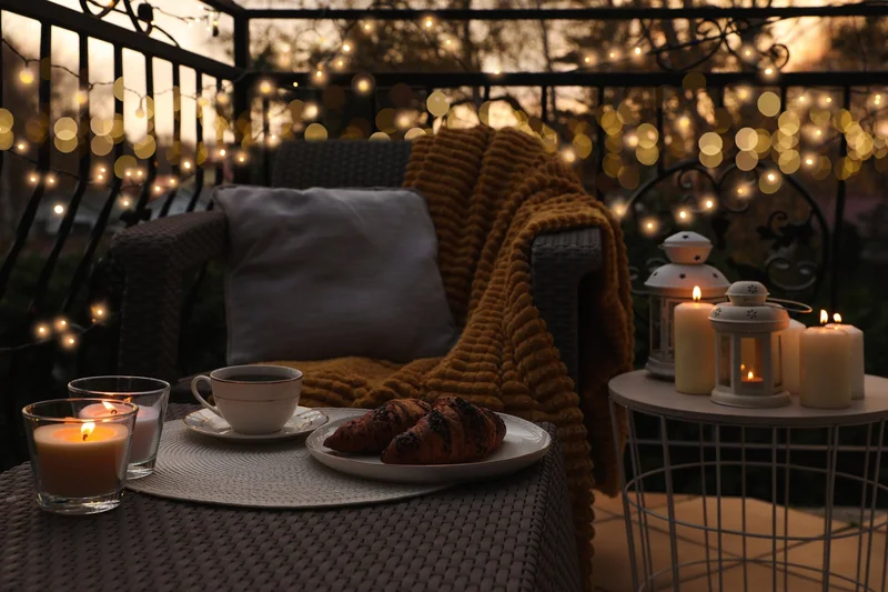 Уютный уголок на террасе со свечами. Источник фото: 123rf.com