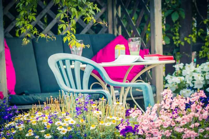 Мебель в индустриальном стиле в саду. Источник фото: 123rf.com