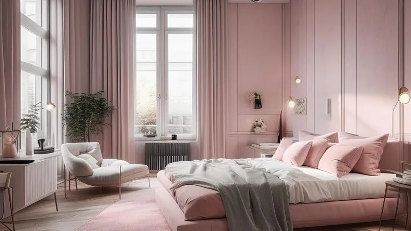Спальня в розовых тонах Источник фото: Создано: (ИИ) ПАО СберБанк©