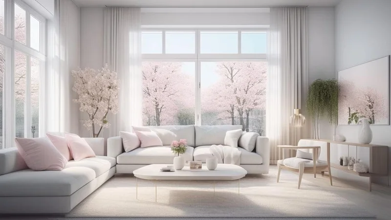 Гостиная в светлых весенних оттенках Источник фото: Создано: (ИИ) ПАО СберБанк©