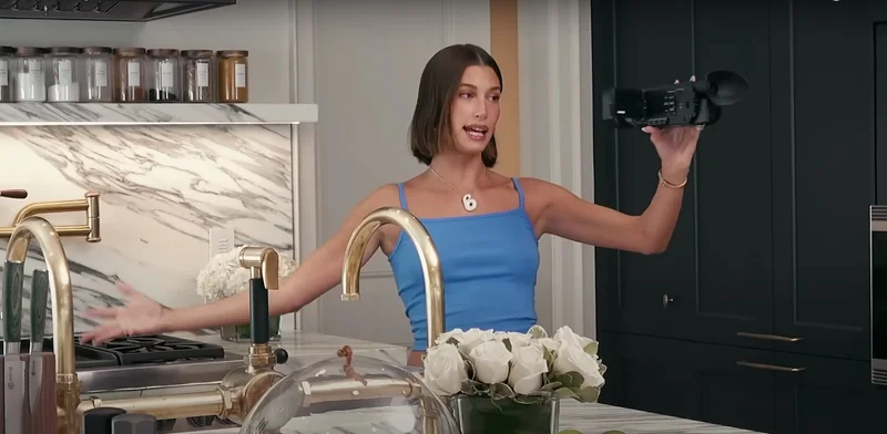 Хейли Бибер на своей кухне Источник фото: Стоп-кадр видео из социальных сетей Хейли Бибер