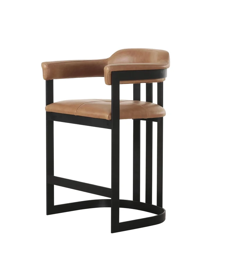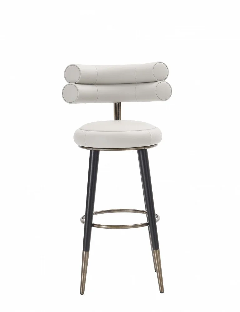 Строгий барный стул с сиденьем из натуральной кожи точно понравится любителям поностальгировать об эпохе ар-деко.