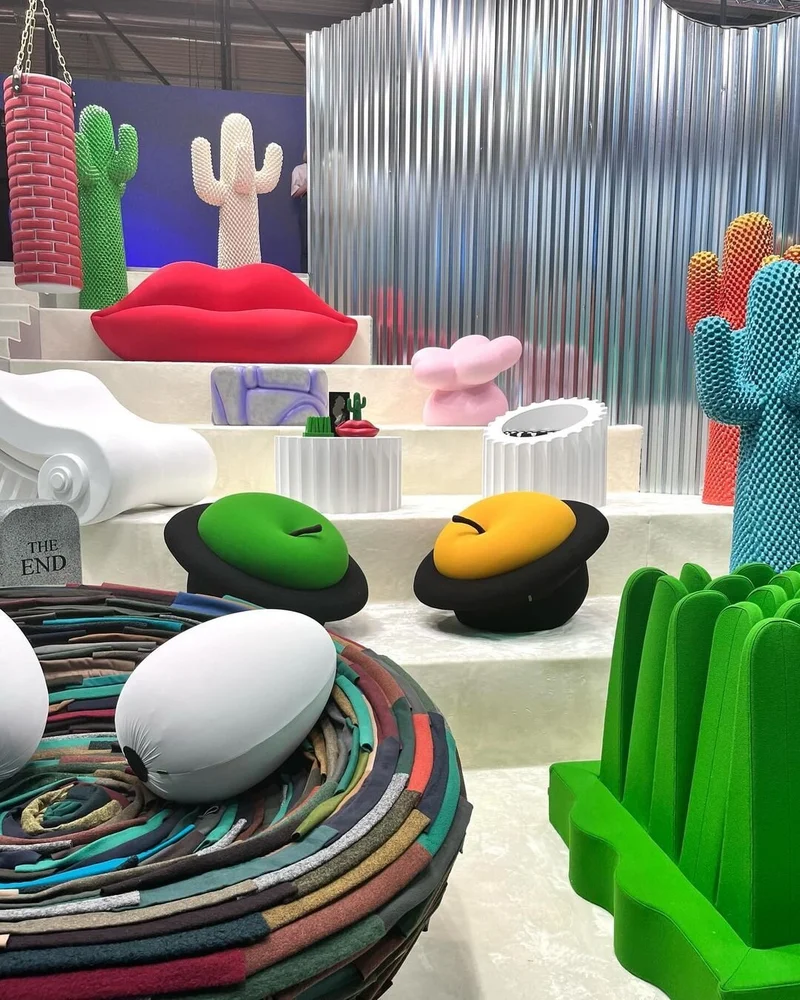 Сотрудничество Supertoys Supertoys и Gufram, итальянского бренда, ассоциирующегося с ультрасовременным дизайном, стало поистине ярким событием на выставке. Их совместное творение Flowie мгновенно привлекло внимание публики, очаровав всех своей цветочной, воздушной формой и универсальностью применения.