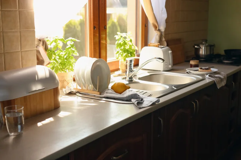 Главная бытовая мечта большинства домохозяек – кухонная мойка, располагающаяся прямо перед окном, чтобы можно было мыть посуду с романтичным видом из окна. Звучит идеально, но на практике – трудноисполнимо и нецелесообразно, ведь доступ к окну становится ограничен, приходится тянуться через всю раковину, чтобы открыть форточку, да и капли воды постоянно попадают на стекло, оставляя следы и разводы.