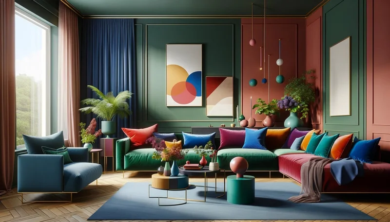 2024 год предлагает нам смелые и неожиданные цветовые решения. В тренде насыщенные и глубокие оттенки, такие как изумрудный зеленый, глубокий синий, бордовый и терракотовый. Эти цвета используются как в отделке стен, так и в мебели и декоре. Смелые цветовые акценты помогают создать динамичный и запоминающийся интерьер. Также популярностью пользуются пастельные тона, которые создают мягкий и нежный фон для более ярких деталей.