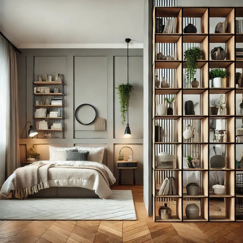 Мобильные перегородки и ширмы. Легкие и передвижные ширмы позволяют быстро изменять планировку. Они могут быть стильными, из различных материалов, от ткани до бамбука, и служат не только практическим, но и декоративным элементом.