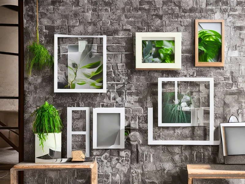 Креативное оформление стены растениями и рамками. Источник фото: freepik.com