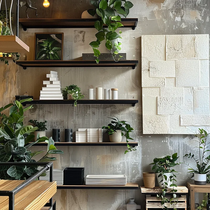 Сочетание текстур — это еще один аспект, который стоит учитывать. Например, глянцевые листья монстеры будут прекрасно выглядеть рядом с матовым бетоном или шероховатым кирпичом. Такое разнообразие поверхностей добавляет слоистости пространству и усиливает визуальное восприятие.