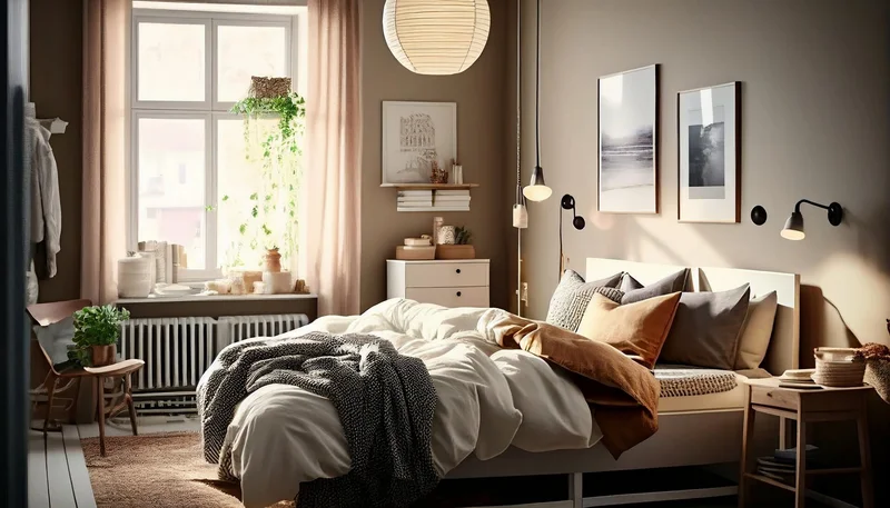 Тумба, стоящая возле кровати, привлекает не меньше внимания. Этот элемент делает комнату уютнее и комфортнее для пребывания человека. И в некотором смысле, это трекер привычек. Когда владелец хочет перейти на здоровый образ жизни, он ставит на тумбу стакан воды, чтобы выпить сразу после пробуждения. Если хочет больше читать – кладет книгу, планировать день – задачник, раньше просыпаться – декоративный будильник.