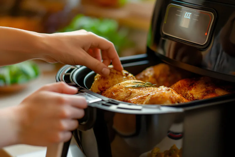 Устройство готовит продукты с помощью обдува горячим воздухом