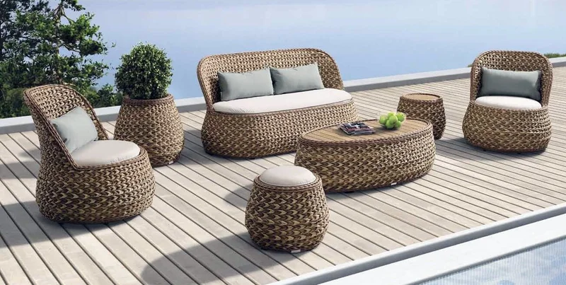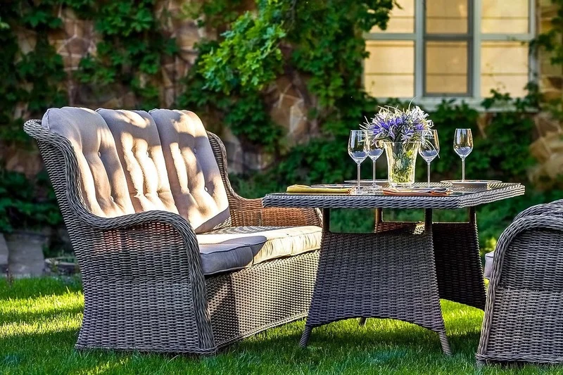 Плетеную мебель используют для обустройства террас ресторанов, кафе, гостиных домов, загородных участков. Такие изделия станут красивым украшением сада, а также обеспечат комфорт для людей, отдыхающих за городом.