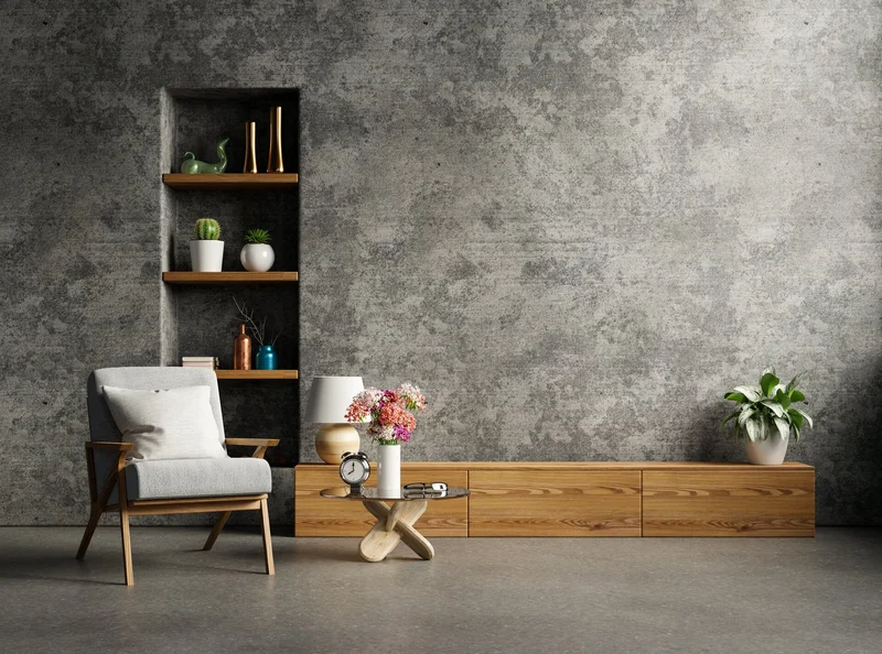 Декоративная штукатурка позволяет создавать на стенах уникальные текстуры, добавляя интерьеру оригинальности и характера. Благодаря различным оттенкам и эффектам, декоративная штукатурка создает игру света и тени, делая стены живыми и объемными. А актуальная штукатурка под бетон – трендовая отсылка к сдержанному стилю джапанди, где большое внимание уделяется материалам и текстурам.