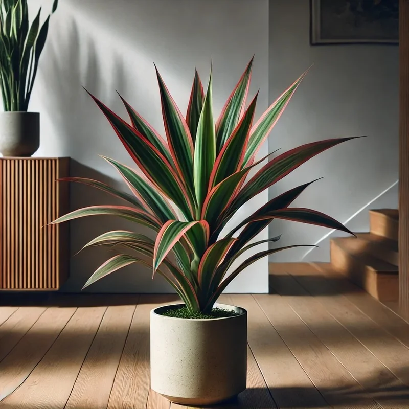 Драцена маргината - растение с длинными узкими листьями с красными краями, которое удаляет ксилол, трихлорэтилен и формальдегид из воздуха. Это растение легко адаптируется к различным условиям и требует умеренного полива, что делает его подходящим для современных интерьеров.