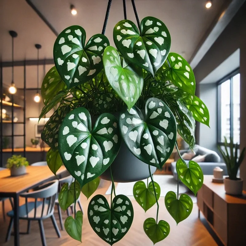 Сциндапсус отличается своими сердцевидными листьями с серебристыми пятнами и является отличным очистителем воздуха, удаляющим формальдегид, ксилол и толуол. Это растение любит тень и высокую влажность, поэтому оно будет чувствовать себя отлично в ванной комнате или в уголке гостиной.
