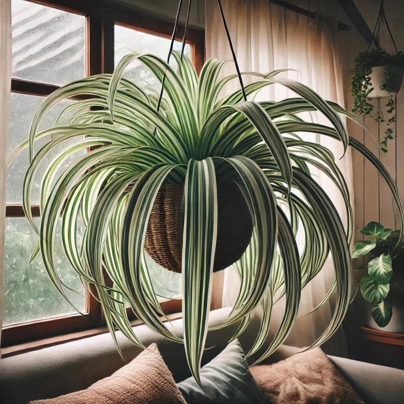 Хлорофитум, или паучий плющ, славится своей способностью удалять формальдегид, ксилол и толуол из воздуха. Это быстрорастущее растение легко размножается и не требует сложного ухода. Его длинные, изящные листья с белыми полосами добавят уюта вашему дому.